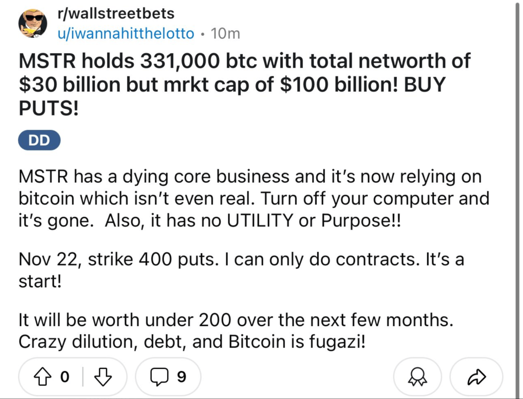 I don’t know if they will short it or not, but there are a lot of people calling MSTR a bubble. The question is just how many of the WSB community will get behind this move. Michael Saylor is on record saying that he wants investors and hedge funds to short his stock. That’s how confident he is that bitcoin is going up.